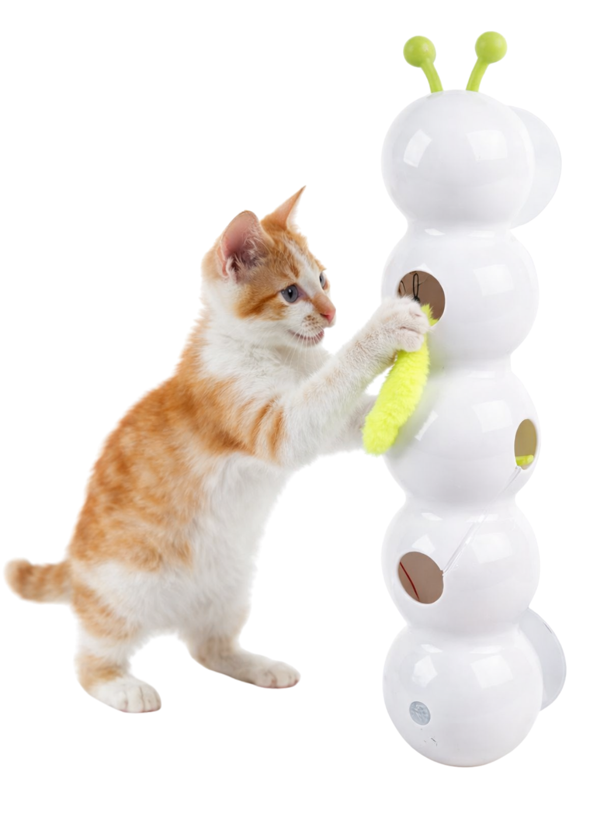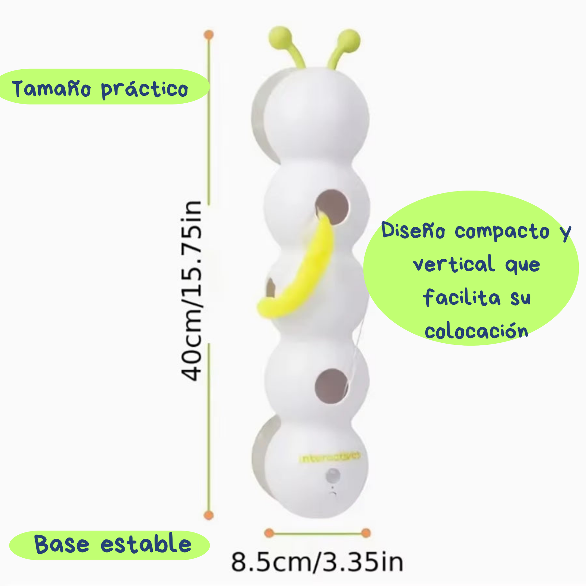 - 🐛 Diseño de oruga interactivo que despierta el instinto natural de caza de tu gato y lo mantiene activo y entretenido durante horas.